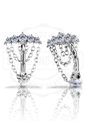 SS316L DOUBLE JEWELLED BANANAS SET W. PREMIUM ZIRCONIA AND CHAIN