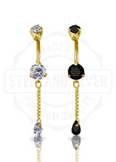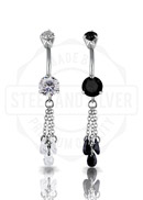 SS316L DJ MINI BELLY BANANA W. CHAIN ZIRCONIA DROP DANGLE