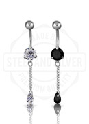 SS316L MINI BELLY BANANA W. CHAIN FLOATING ZIRCONIA DANGLE