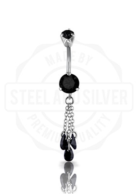 SS316L DJ MINI BELLY BANANA W. CHAIN FLOATING ZIRCONIA DANGLE
