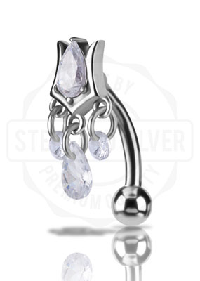 SS316L BELLY BANANA SET W. CUBIC ZIRCONIA AND PEAR DROP DANGLE