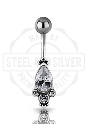 SS316L TRIBAL BELLY BANANA SET W. CUBIC ZIRCONIA