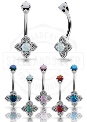 SS316L BELLY BANANAS SET W. LAB CREATED OPALS
