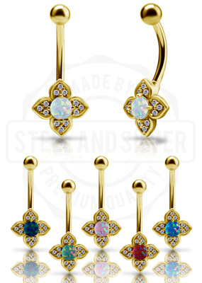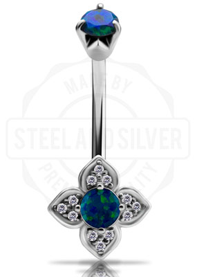 SS316L DOUBLE JEWELLED BELLY BANANAS SET W. LAB CREATED OPALS