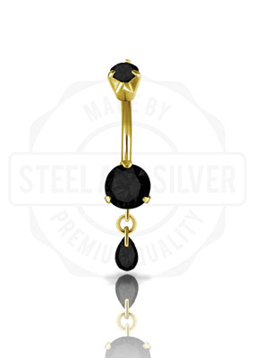 GOLD PVD SS316L DJ MINI BELLY BANANA W. ZIRCONIA DROP DANGLE