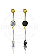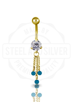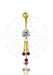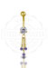 GOLD PVD SS316L MINI BELLY BANANA W. PRECIOUS STONES BEAD DANGLES