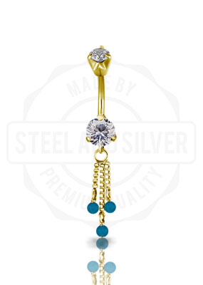 GOLD PVD SS316L DJ MINI BELLY BANANA W. PRECIOUS STONES BEAD DANGLES
