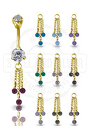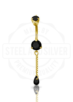 GOLD PVD SS316L DJ MINI BELLY BANANA W. CHAIN ZIRCONIA DROP DANGLE