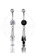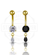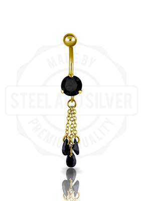 GOLD PVD SS316L MINI BELLY BANANA W. CHAIN FLOATING ZIRCONIA DANGLE
