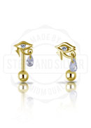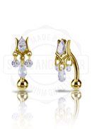 GOLD PVD SS316L BELLY BANANA SET W. CUBIC ZIRCONIA AND PEAR DROP DANGLES