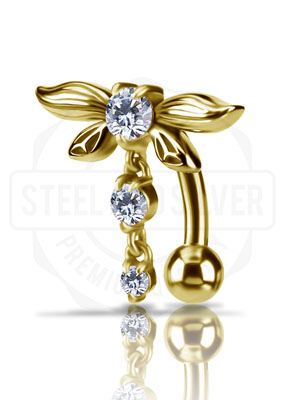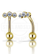 GOLD PVD SS316L BELLY BANANA SET W. CUBIC ZIRCONIA AND ROUND DROP DANGLES