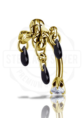 GOLD PVD SS316L SNAKE BELLY BANANA SET W. DOUBLE JEWELED AND DROP DANGLES