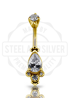 GOLD PVD SS316L TRIBAL DJ BANANA WITH SET CUBIC ZIRCONIA