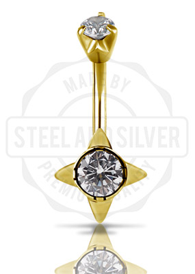 GOLD PVD SS316L DBL. JEW. BANANA NORDIC STAR SET W.CUBIC ZIRCONIA