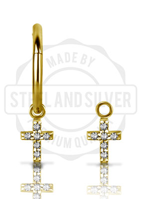 GOLD PVD CROSS CHARM FOR HINGED SEGMENT RINGS SET W. CUBIC ZIRCONIA