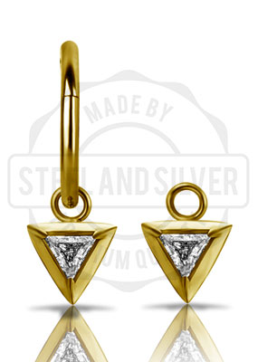 GOLD PVD TRIANGLE CHARM FOR HINGED SEGMENT RINGS SET W. CUBIC ZIRCONIA