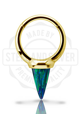 GOLD PVD SS316L HINGED CLICKER WITH LONG LAB CREATED OPAL SPIKES