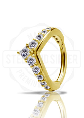 GOLD PVD SS316L V SHAPE CLICKER SET W. PREMIUM ZIRCONIA
