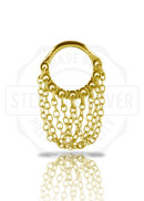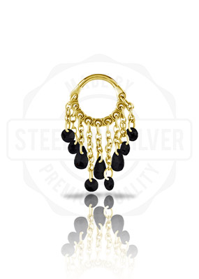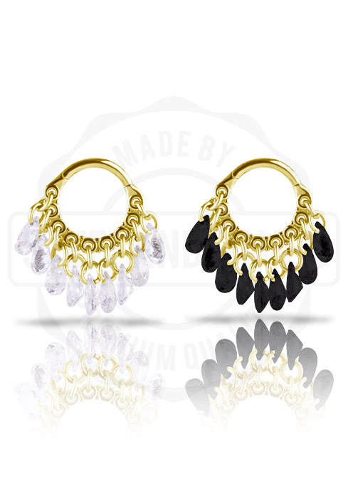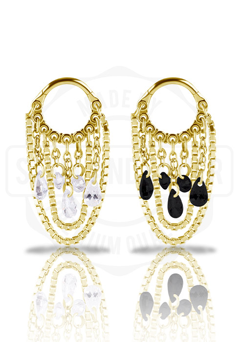 GOLD PVD SS316L HINGED RING WITH PEAR SHAPE AND ROUND STONE DANGLES