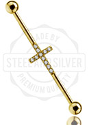 GOLD PVD SS316L INDUSTRIAL BARBELLS SET W. CUBIC ZIRCONIA