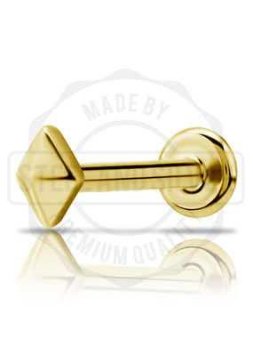 GOLD PVD SS316L ONE SIDE INT. THREADED MICRO LABRETS (PYRAMID) (0.8mm INT.)