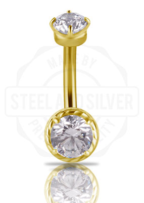 GOLD PVD SS316L INTERNAL ROOK BANANA SET W. PREMIUM ZIRCONIA