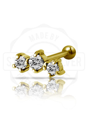 GOLD PVD SS316L ONE SIDE INTERNAL MICRO BARBELLS (3CUPS) (0.8mm INT.)