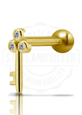 GOLD PVD SS316L ONE SIDE INT. MICRO BARBELL SET W. CUBIC ZIRCONIA (LEFT)