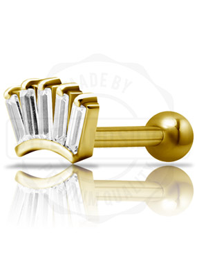 GOLD PVD SS316L ONE SIDE INT. MICRO BARBELL SET W. CUBIC ZIRCONIA (RIGHT)