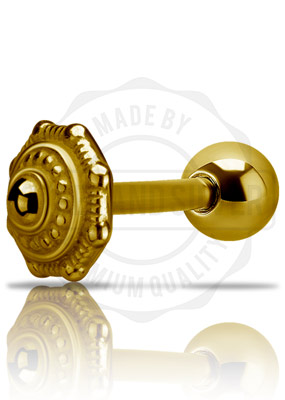 GOLD PVD TRIBAL TONGUE BARBELLS (8MM HEAD)