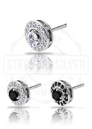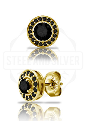 GOLD PVD 4MM EARSTUDS W. DETACHABLE PAVE SET HALO EAR JACKET