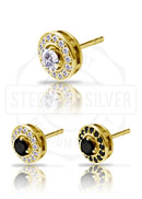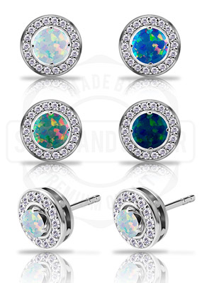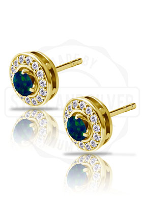 GOLD PVD 4MM LAB CREATED OPAL EARSTUDS W. DETACHABLE PAVE SET HALO EAR JACKET