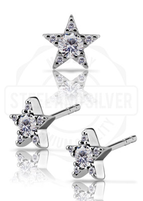 GOLD PVD STAR EARSTUDS SET W. CUBIC ZIRCONIA