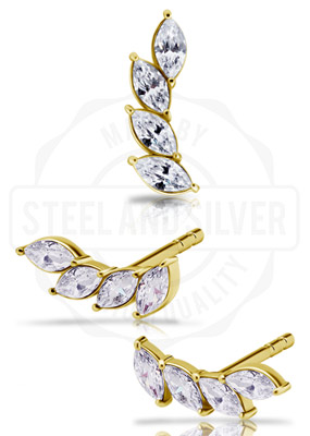 GOLD PVD EARSTUDS CLIMBER SET W. MARQUISE CUBIC ZIRCONIA