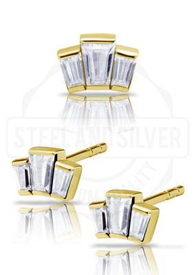 GOLD PVD EARSTUDS SET W. TAPERED BAGUETTE CUBIC ZIRCONIA