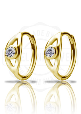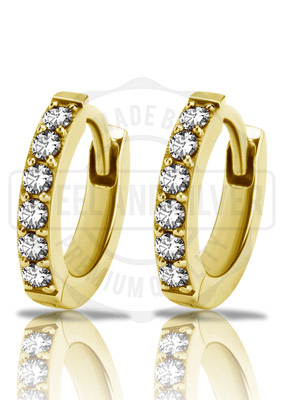 GOLD PVD HUGGIE HOOP EARRINGS 1 ROWS PAVE SETTING