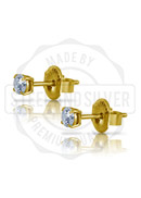 GOLD PVD EARSTUDS SET W. 3MM ROUND PREMIUM ZIRCONIA (CHAIN 3.2CM)