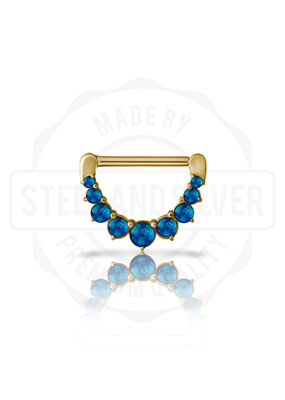 GOLD PVD STEEL NIPPLE CLICKER SHIELD w.SYN OPAL (PRONGS SETTING)