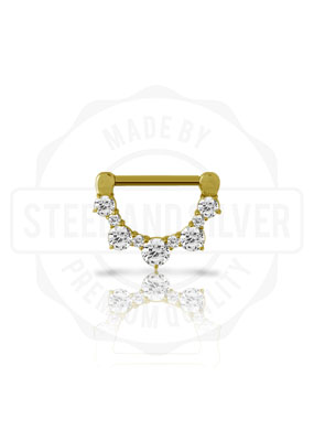 GOLD PVD STEEL JEWELLED NIPPLE CLICKER SHIELD (CZ PRONGS SETTING)
