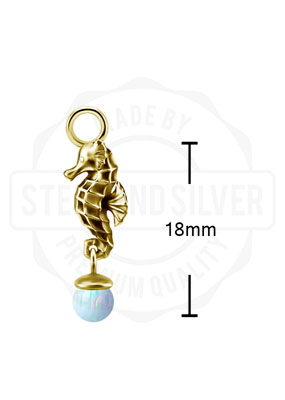 GOLD PVD CoCr NF SEA HORSE CHARMS SET W. LAB CREATED OPALS