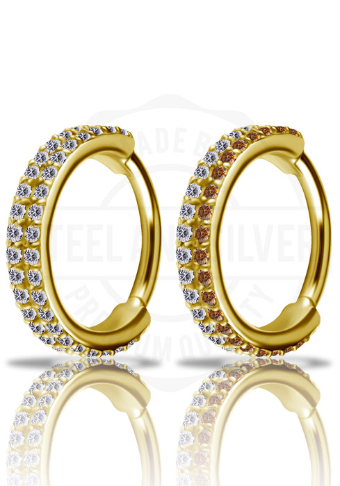 GOLD PVD CoCr NF FRONT FACING HINGED CLICKERS SET W.PREMIUM ZIRCONIA