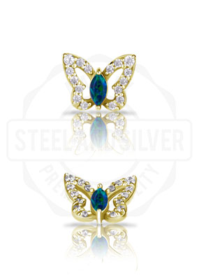 GOLD PVD CoCr NF INTERNAL BUTTERFLY ATT. SET W. LAB CREATED OPALS