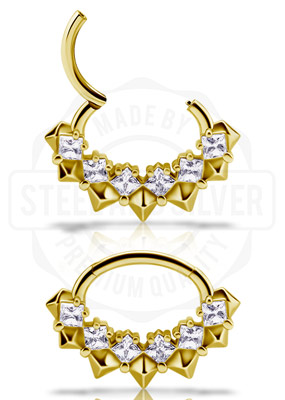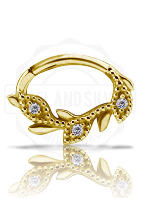 GOLD PVD CoCr NF SEPTUM/DAITH CLICKER SET W. PREMIUM ZIRCONIA - (LAUREL)