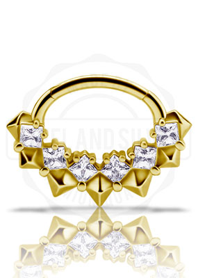 GOLD PVD CoCr NF SEPTUM/DAITH CLICKER SET W. PREMIUM ZIRCONIA (SQUARE)