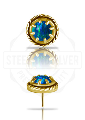 GOLD PVD CoCr NF THREADLESS ATT. SET W. LAB CREATED OPALS
