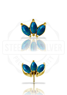 GOLD PVD CoCr NF THREADLESS ATT. SET W. LAB CREATED OPALS