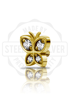 GOLD PVD SS316L MICRO BUTTERFLY ATT. SET W. PREMIUM ZIRCONIA (FOR 1.2 INT)