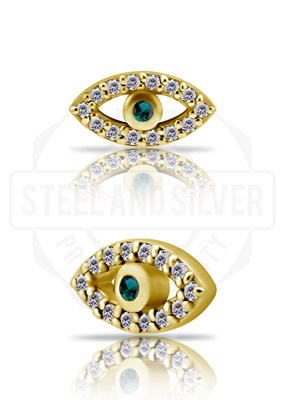 GOLD PVD SS316L MICRO EYE ATTACHMENT SET W. CUBIC ZIRCONIA