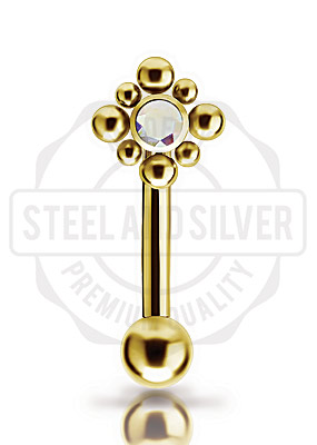 GOLD PVD TIT. INT. ROOK / EYEBROW CLUSTER BANANA SET W. PREMIUM ZIRCONIA