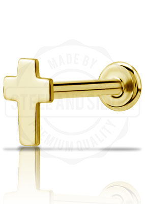 GOLD PVD TITANIUM INT. THREADED MICRO LABRETS (CROSS)